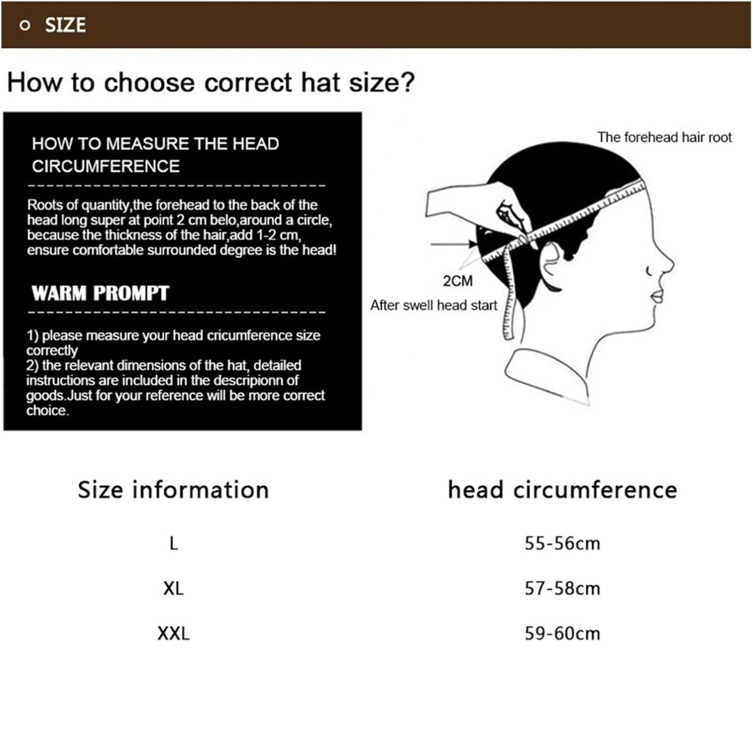 Hat Circumference (XL): 57–58 cm (22.4"–22.8")