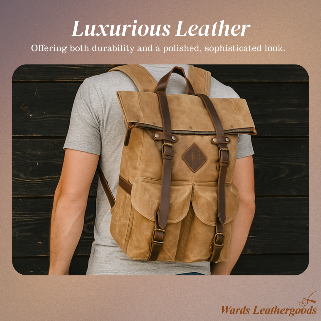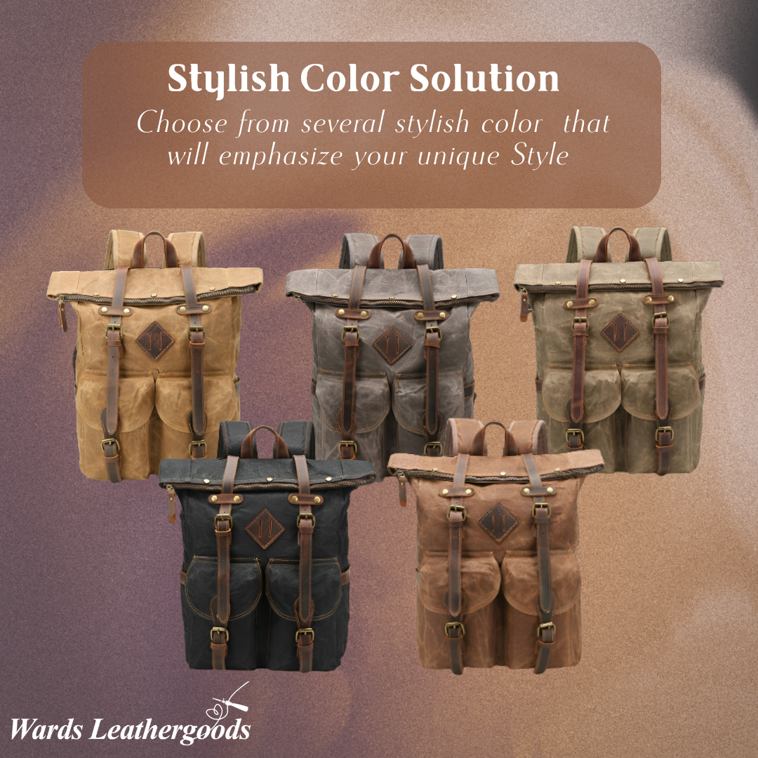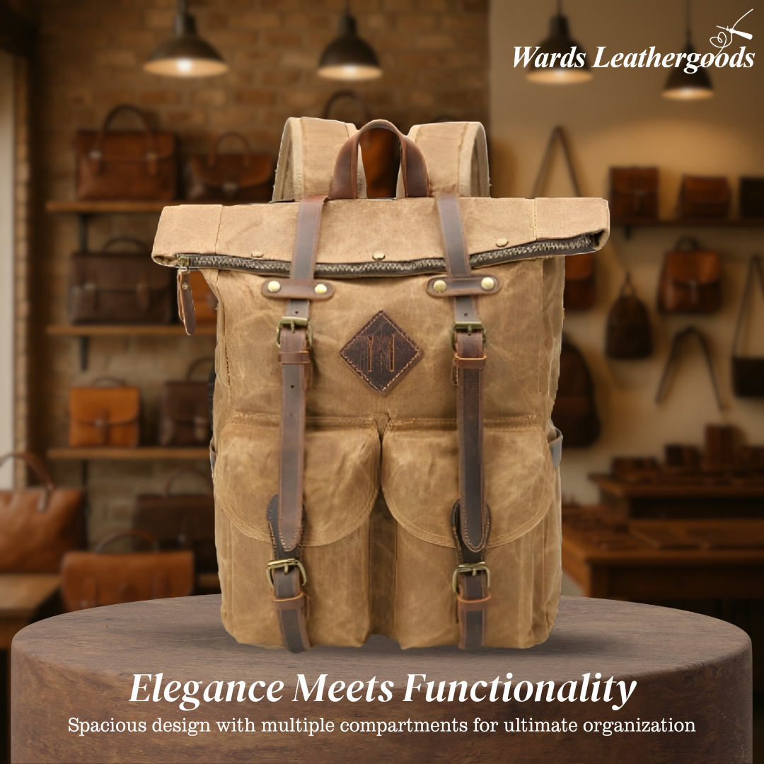 This roll-top backpack features genuine leather accents, blending durability with vintage style. The sturdy construction ensures long-lasting use, while the leather details give it a rugged, timeless appeal. Perfect for everyday adventures or outdoor activities.