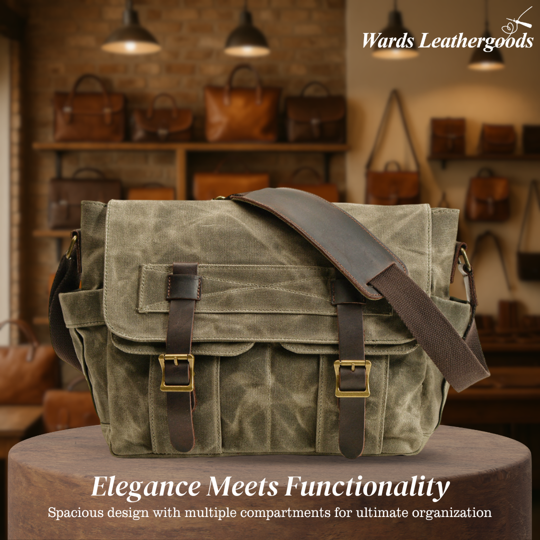 Elevate your style with Lester Retro Textured Canvas Leather shoulder bag that features a slightly textured, possibly waxed canvas surface that adds both style and resilience. It resists minor scuffs and moisture. This finish keeps the bag looking new for longer.
