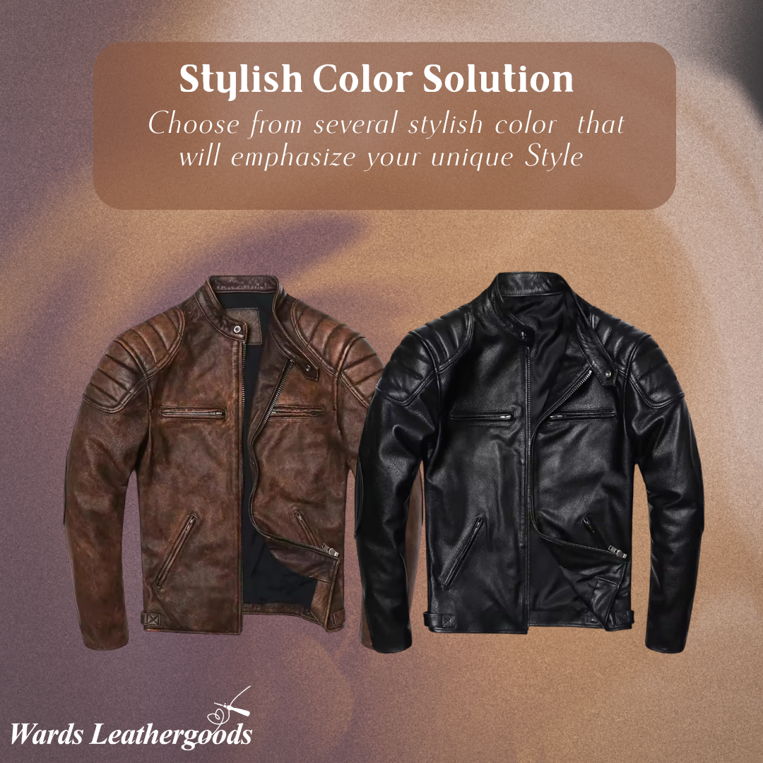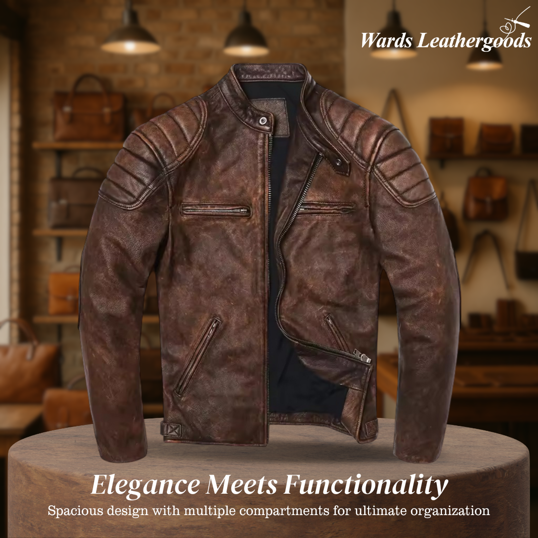 This vintage racer leather jacket offers rugged character and timeless charm. The distressed finish makes every piece unique. A go-to choice for motorcycle enthusiasts and edgy style seekers.