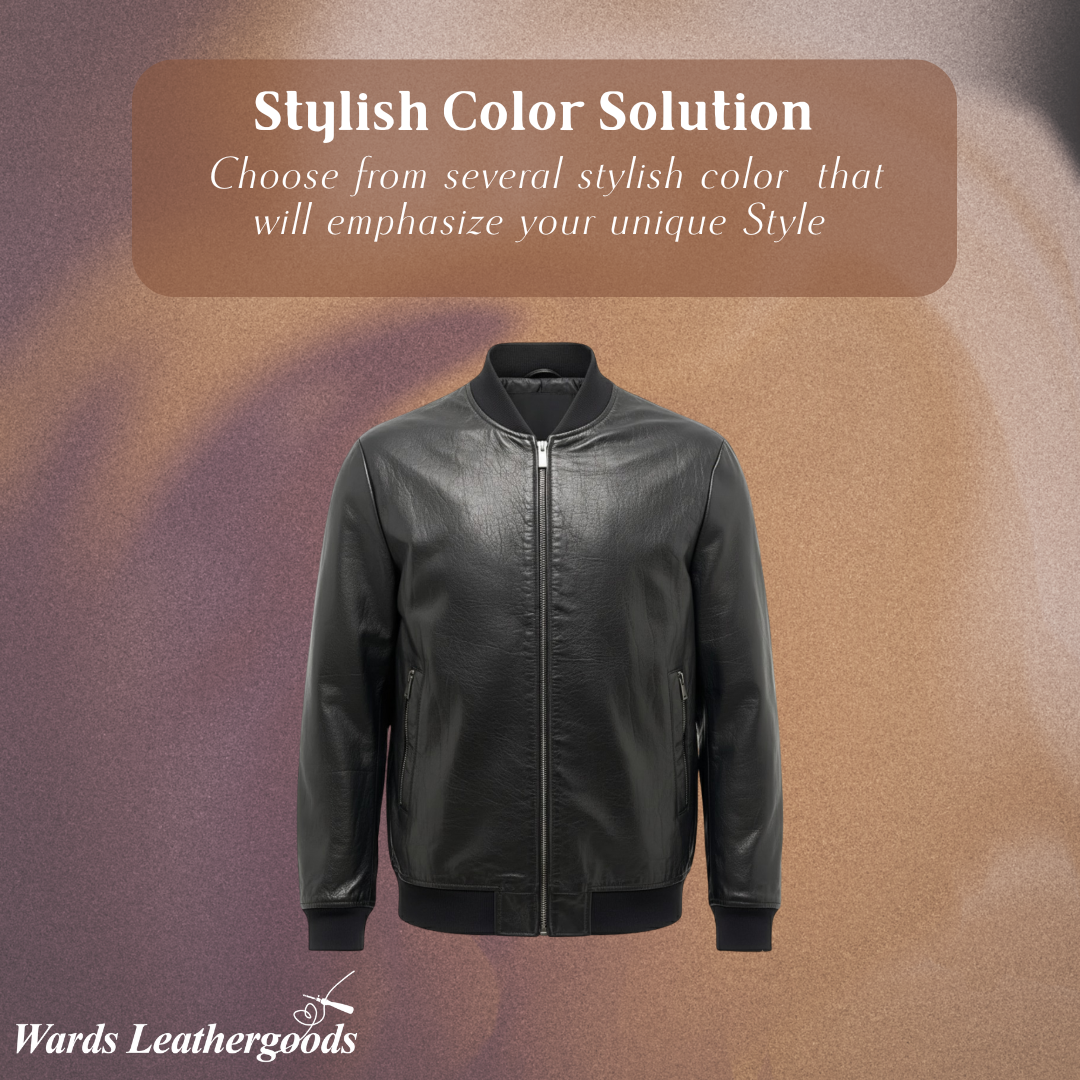 This men’s black leather bomber jacket combines classic style with modern edge. The zip-up front ensures easy wear and versatility. Perfect for casual outings or night looks.