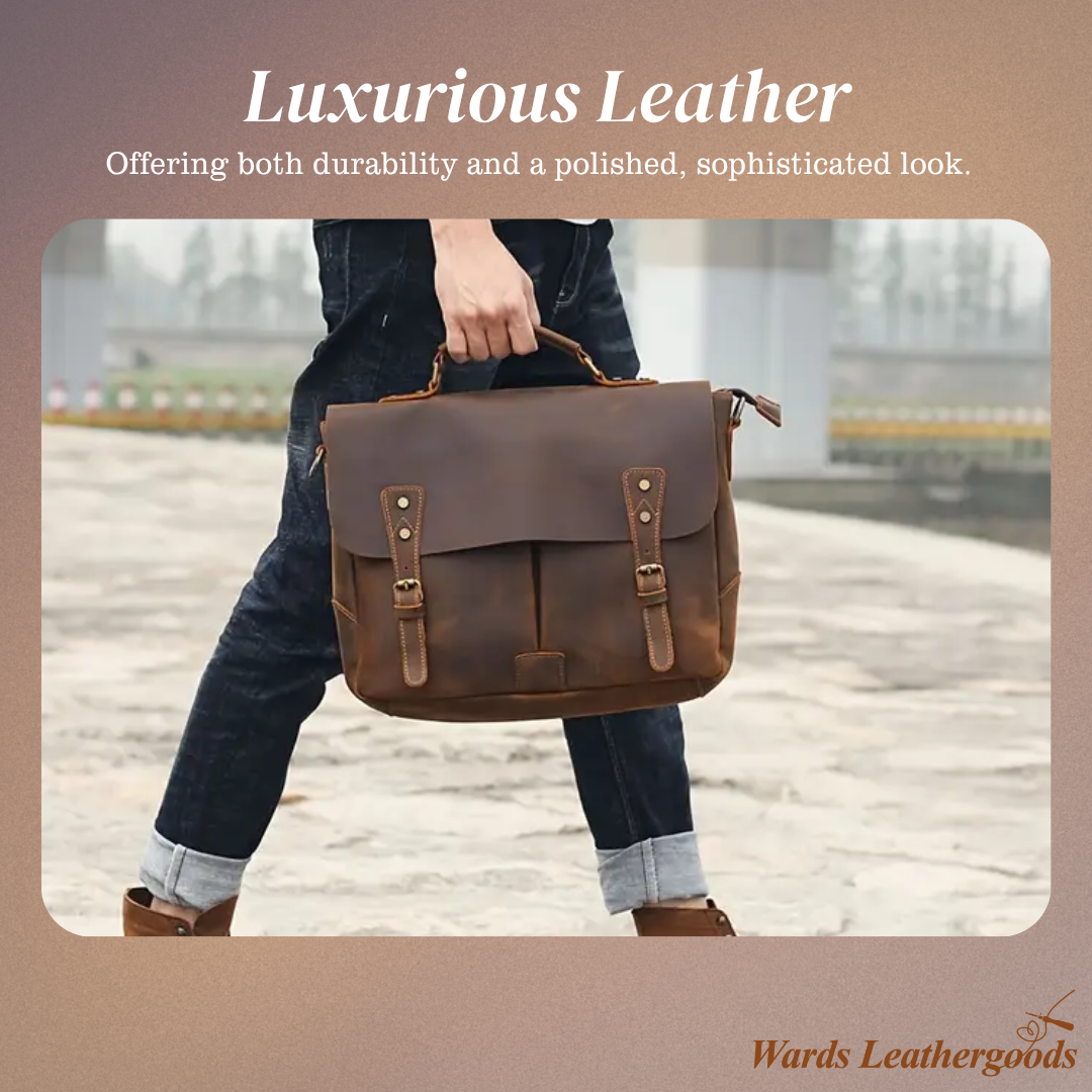 Designed for convenience, this bag includes multiple compartments for laptops, documents, and essentials. Its structured shape and soft texture balance rugged utility with a refined, classic silhouette.