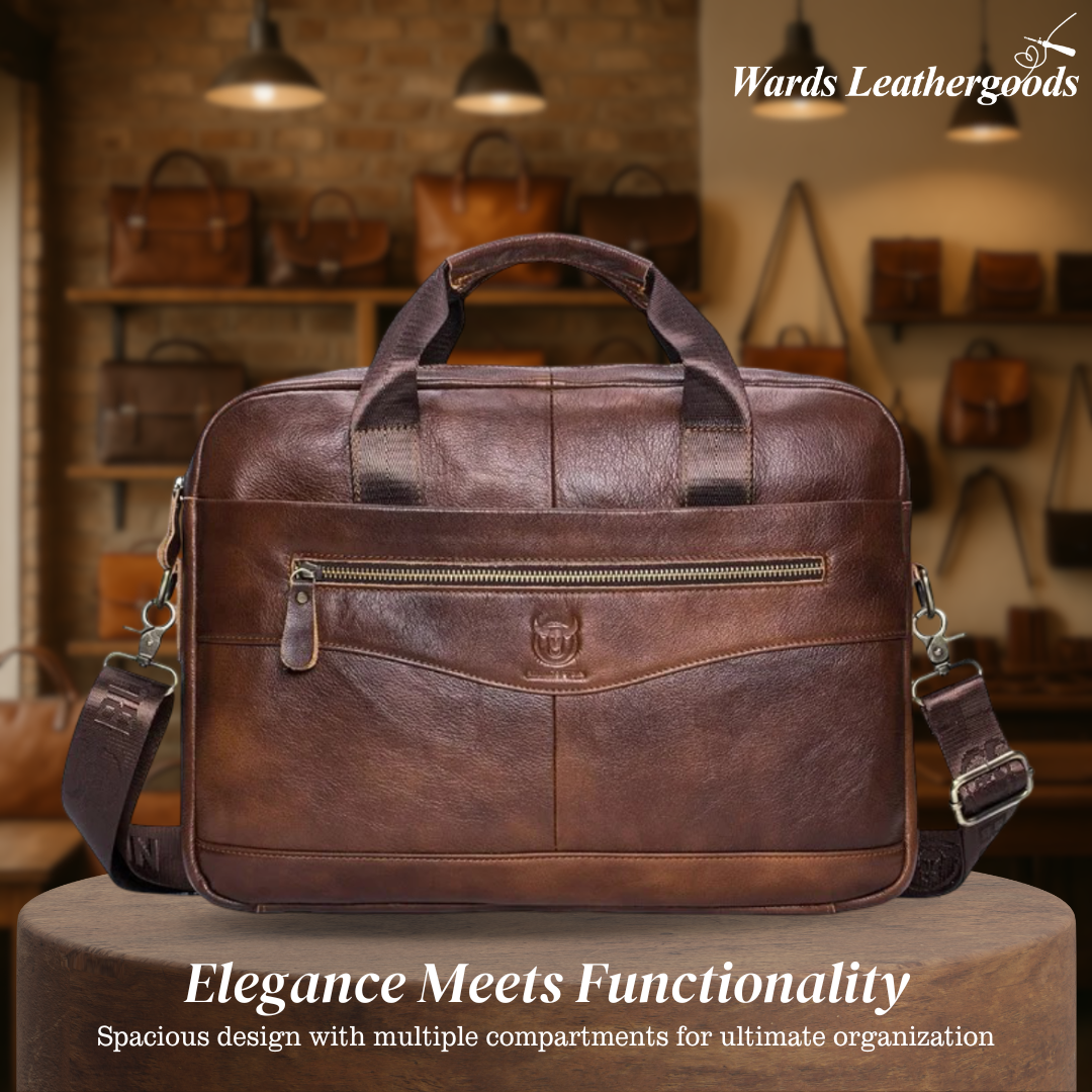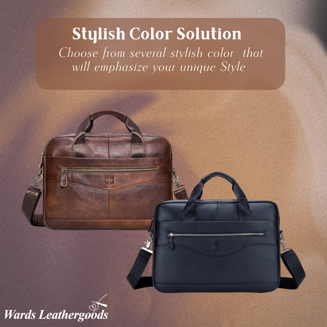 Crafted from top-layer cowhide leather, this laptop bag suits both formal meetings and casual settings. Its curved zip detail adds distinction while maintaining convenience during commutes or business travel.